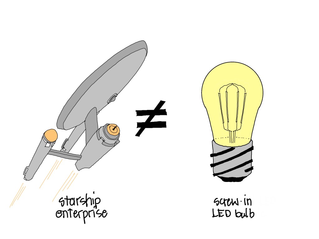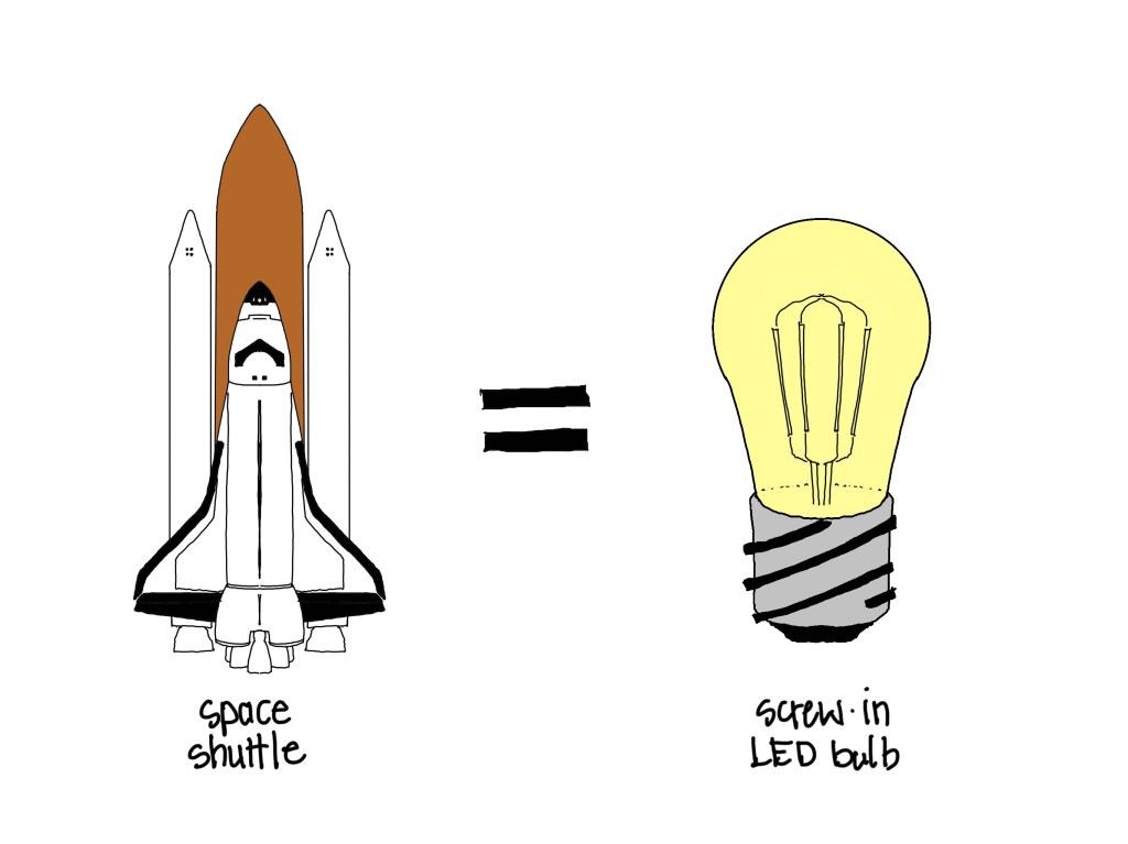 Let me sum up. If you think the Space Shuttle is the best we can do for space exploration, then the screw-in LED bulb might be good enough for you. If you think we can build a better spaceship (how about a booster rocket that returns home and lands itself?), then you might consider advanced fixtures with built-in LEDs. They can improve every waking moment of your life (and even help you sleep better at night).