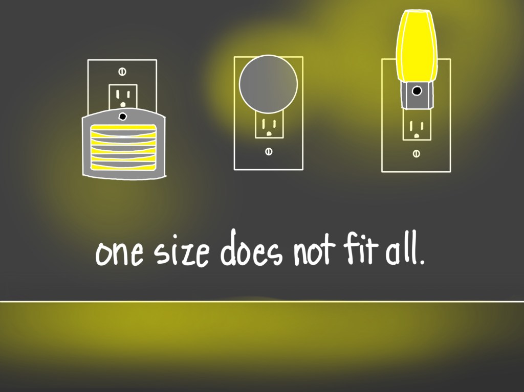 Nightlights? Seriously? This is an entire blog post about plug-in nightlights, those cheap little plastic things that we begged our moms to put in our dark scary bedrooms? Turns out this post is a great example of what I and my fellow lighting designers do: we think it through. And thinking it through usually leads us to something entirely different.