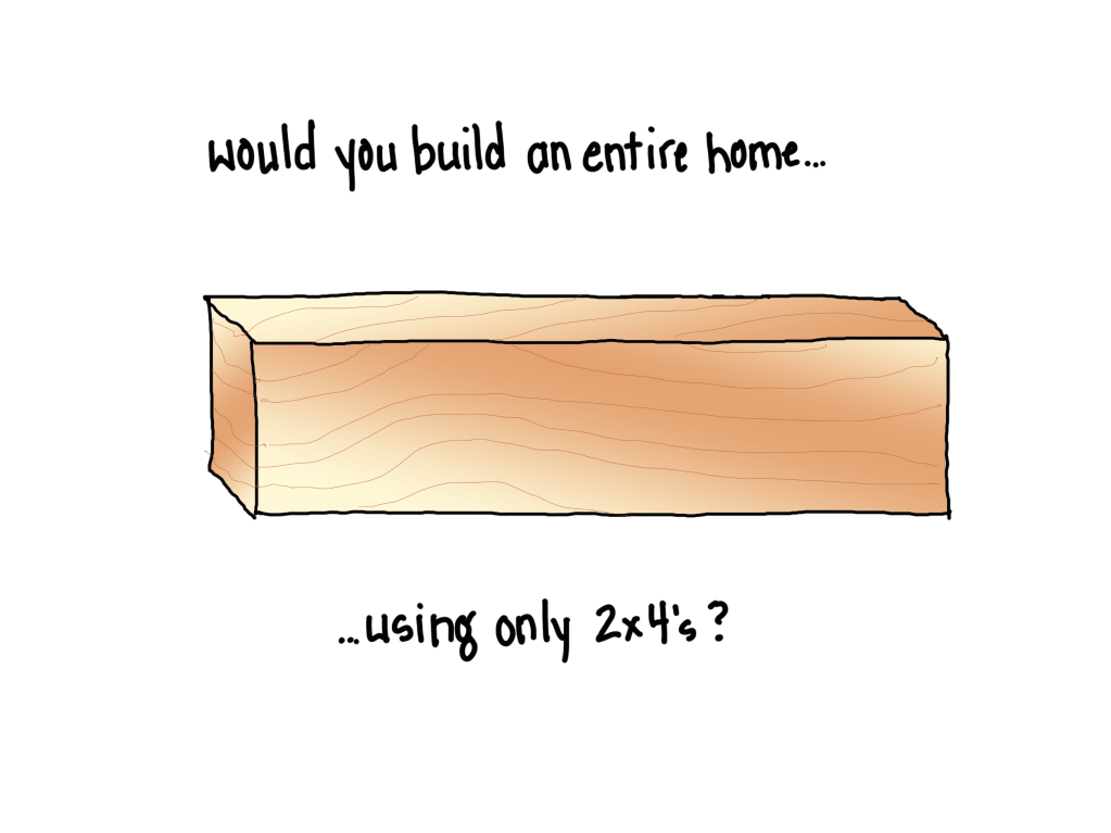 We all know that building a house entirely out of 2×4’s is impractical, ugly, and more than a little bit silly.