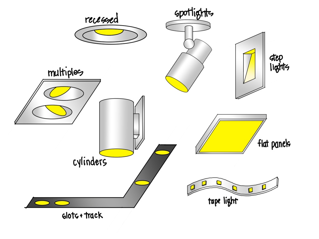 We may supplement downlights with recessed multiples or cylinders. We may add layers of light with slots or tape light. We may fill utility rooms and closets with flat panels, highlight art with spotlights, and make a home safe at night with step lights. If your lighting budget calls only for recessed downlights and the occasional under-cabinet light, you are likely missing out on what lighting can do for you.