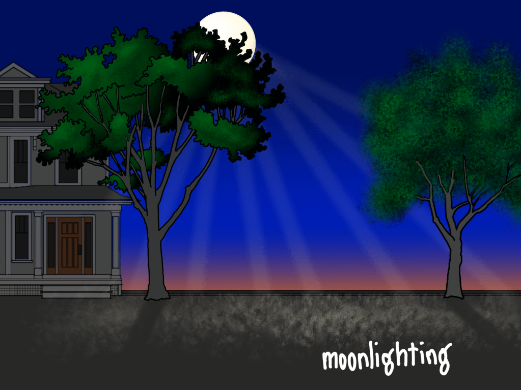 Now, where was I? Ah, yes, narrowing down thousands of lighting choices to just one for outdoor landscape illumination. There are so many great techniques for outdoor lighting (and indoor, for that matter), that choosing just one can be a challenge. But that’s the very idea – to challenge myself to pick one that I think is the most important, or the most beneficial, or the most beautiful. In the case of a landscape with mature trees, I might have hit all three with today’s choice: moonlighting.