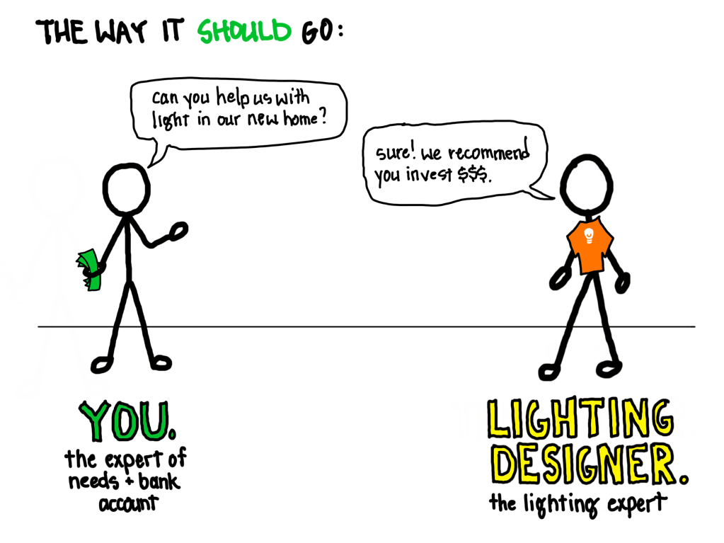 We can learn something from the builder conversation at the beginning of this post. A client can ask for lighting, and the lighting designer can make a recommendation.