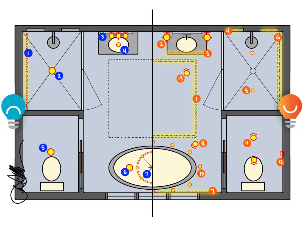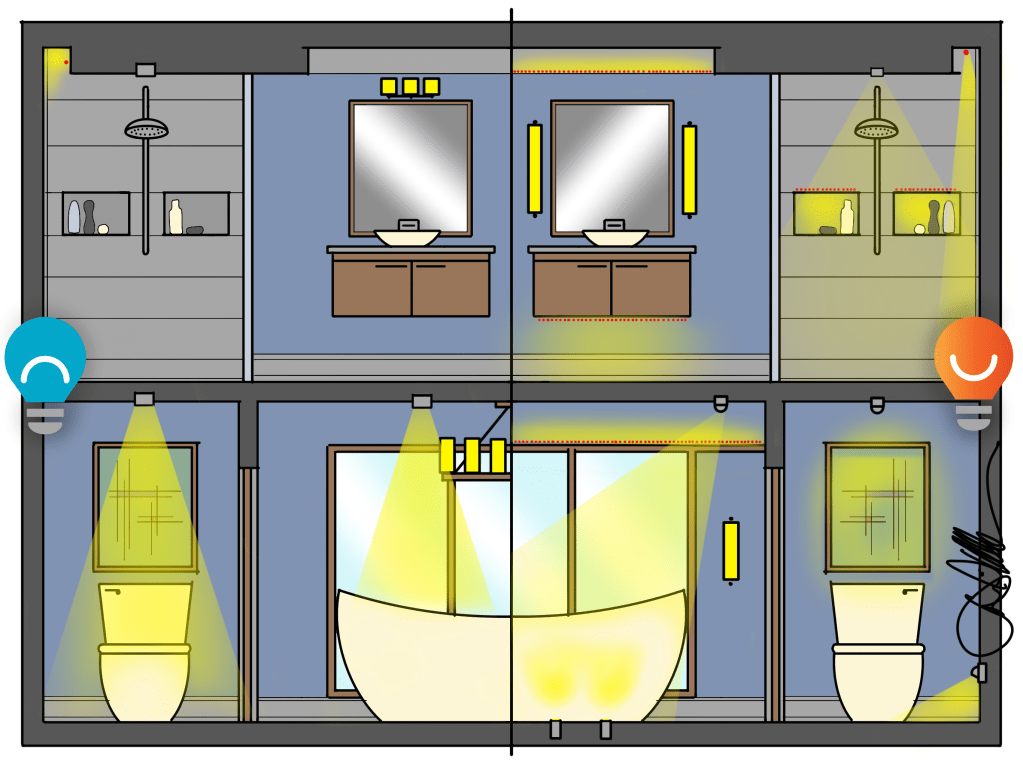 - Do provide low-level lighting for night. Help yourself wake more gently and relax more easily with lights down low, under vanities, in water closets, and in shower niches.
