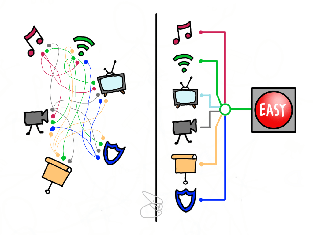 Today’s homes and workplaces are more connected than ever. Our televisions are likely getting streaming content over internet, with sound broadcast to separate speakers, also connected to streaming music platforms, all of which may be in rooms with powered roller shades over windows connected to security systems.