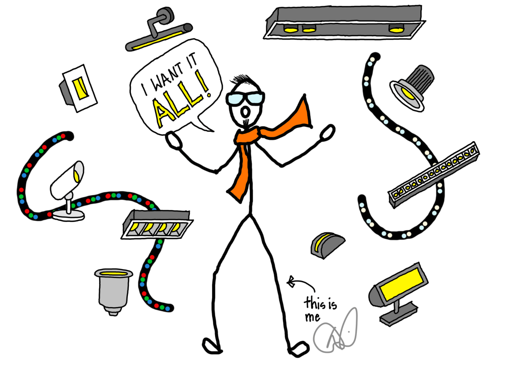 I want it all, of course, but perhaps I could remind myself that narrowing down to a few solutions- and repeating them over and over- could make life easier for everyone involved. As a bonus, when we simplify we make it possible to reduce our prices, making better lighting more affordable to others. And that is a big win. So how can we get there?