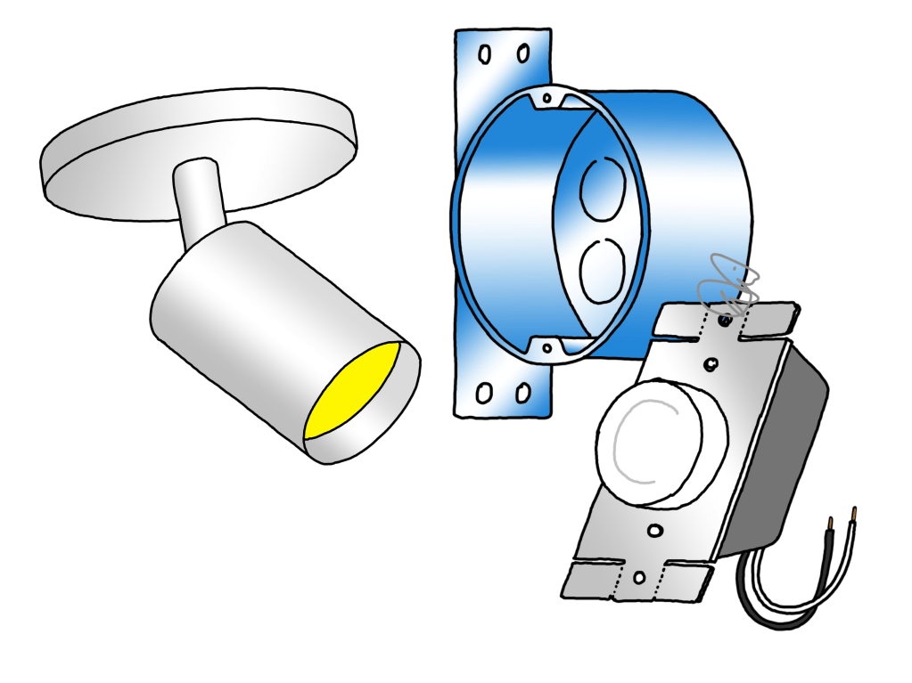 Monopoints are surface-mounted adjustable spotlights that allow aiming in nearly any direction. This flexibility exceeds the flexibility of any recessed downlight, allows for more precision focusing than any linear strip light, and is available in cost-conscious versions that install simply to a round ceiling box.