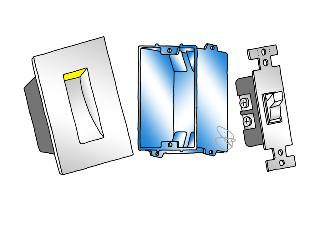 Safety zone path lights – formerly recessed step lights (okay, I’ll stop) – come in versions that install in standard 2” x 4” wall boxes, the same boxes that take electrical receptacles. A simple switch is inexpensive and easy to install and can adequately control a series of these lights, though a switch with built in occupancy sensor can also be a good hands-free solution. They are extremely easy to install, but where should they go?