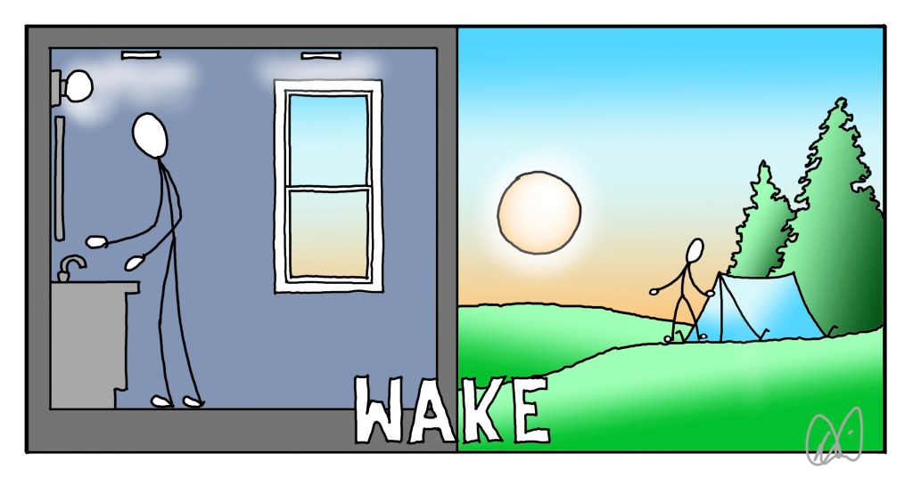 After a bit more on the sacred nature of light, I will dig into how light can help us wake gently. There is no need to trigger a panic response with an alarm clock every morning (yes, it is called an alarm because that is what it causes). Harsh overhead lighting is not what our bodies want. Gently growing light can help you wake as our ancestors did – or as tent campers still do. Your body will thank you and your day will be off to a much better start.