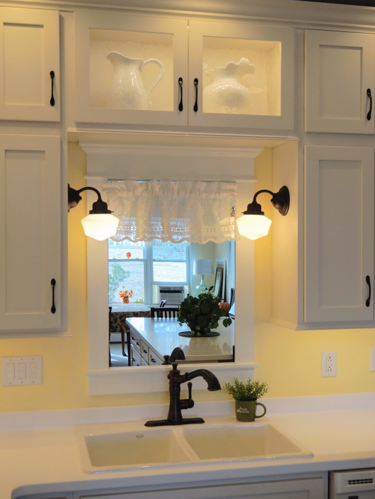 When a friend shared their worry about a kitchen sink with no window, we added a pair of decorative sconces to brighten up the space comfortably. Paired with a mirror, the sink no longer feels trapped and dreary.
