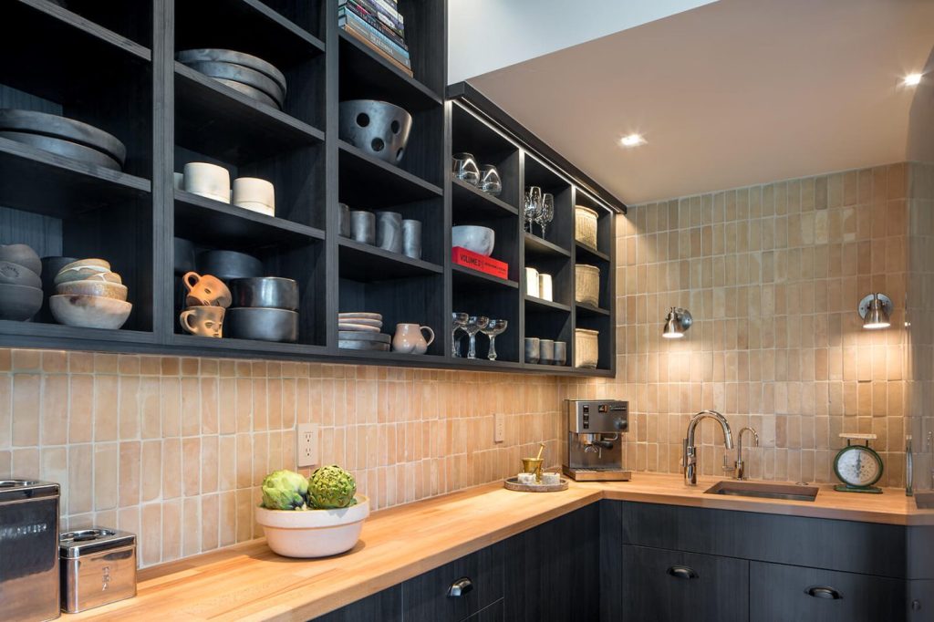 Downward-facing shielded wall sconces like these can do a very good job lighting up countertops and sink areas where there are no overhead cabinets or shelves, like in this pantry in a Colorado home. (Photo credit to Agave Island View)