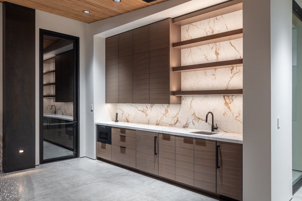 And sometimes you can get a little creative, especially if you are working with a top-tier millwork team and builder. Note the wooden valence at the top of the fireplace that creates a deep pocket, concealing the linear grazer from view. This allows light to leak out and highlight the textured plaster surface, really making it a lovely feature.