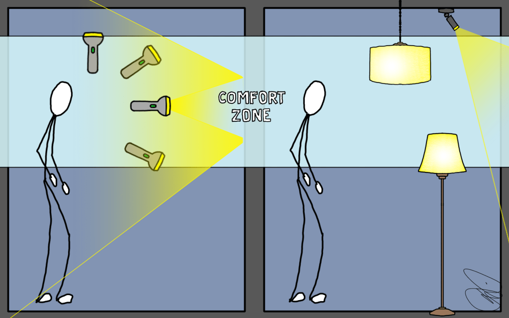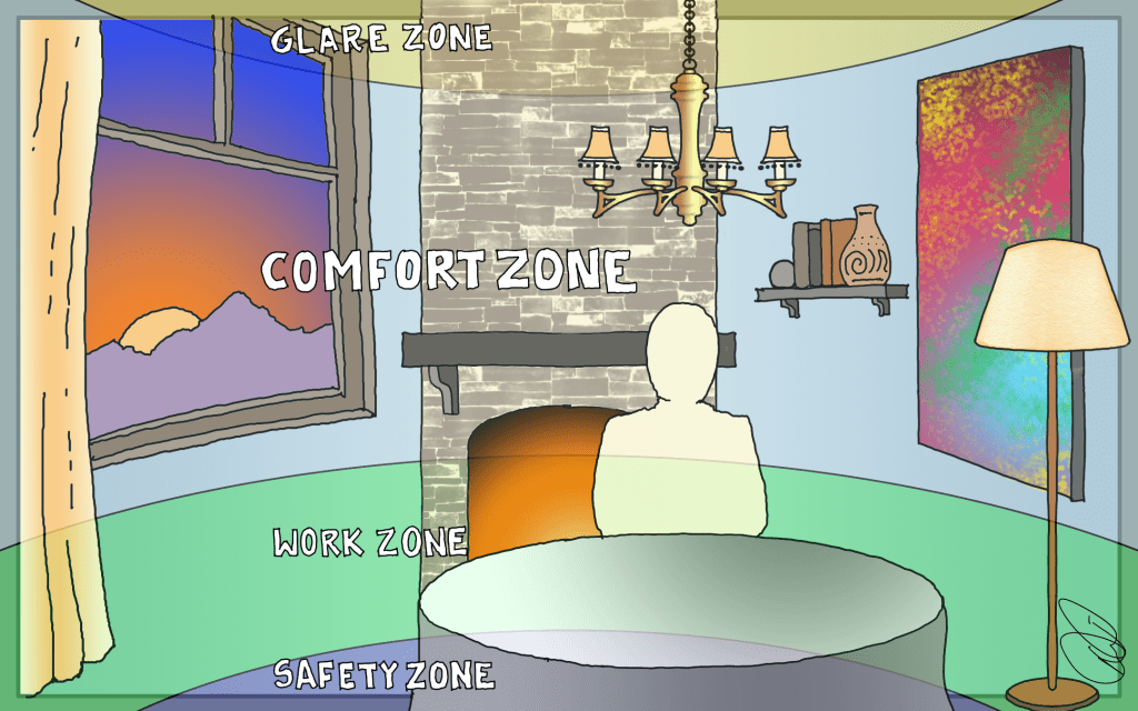 Where we can see with just a little movement of our neck is our sweet spot of vision because that is the area we will see the most, and that same logic leads to the Comfort Zone of lighting.