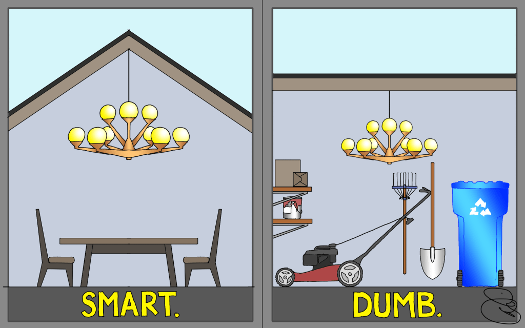 Sometimes, the difference between a smart choice and a dumb choice is easy. You have a beautiful and expensive chandelier. Hang it above the dining room table? Smart. Hang it in the garage, where it will get filthy, where you will bang your head on it every time you grab a broom? Dumb. In a way, panelized dimming is like putting your most expensive lighting in the garage. I’ll explain in a minute.