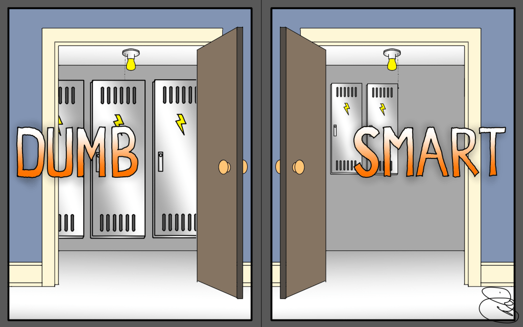 Panelized dimming systems – which I am brazenly calling the “dumb” choice in this post – are in truth pretty nifty. Instead of rows of dimmers and switches on your kitchen wall, each load, or group, of lights is connected back to a dimming panel in a closet or utility room. These dimmers can then be remotely controlled by keypads and even phones and touchscreens.