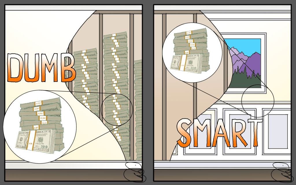 Imagine you have stacks and stacks of cash laying around that you want to use on your new home. You could stack those bills up between the studs and then cover them with sheetrock. Your money would be gone, but any benefit is hidden inside the walls.