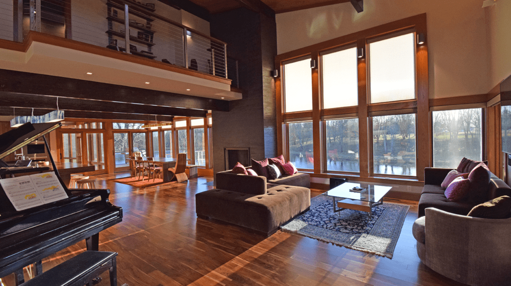 Sometimes a cove light is not possible and window coverings might interfere with the previous solution. In this project, our designers added wall sconces above the patio doors to push light down to the floor (while staying out of the Glare Zone) and to push light upwards into the Comfort Zone.